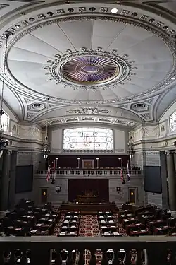 It is individually listed on the National Register of Historic Places and is a contributing property in the Missouri State Capitol Historic District.[2] The capitol is Jefferson City's leading tourist attraction. It is a destination for school groups who arrive by busloads, particularly during General Assembly sessions. Students fill the galleries to watch the Senate and House of Representatives in action.