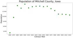 Mitchell County is a county located in the U.S. state of Iowa. As of the 2020 census, the population was 10,565.[1] The county seat is Osage.[2]