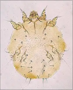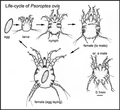 - ^ Sanders, A.P. (2000). "Life-cycle stage morphology of Psoroptes mange mites". Medical and Veterinary Entomology. 14 (2): 131–141. doi:10.1046/j.1365-2915.2000.00223.x. PMID 10872857. S2CID 24755558.