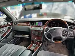 The Proudia came in three specifications labeled A, B, or C. The A and B types were powered by Mitsubishi's 6G74 3,497 cc GDi V6 engine producing 177 kW (237 hp; 241 PS) at 5,500 rpm and 343 N⋅m (253 lb⋅ft) of torque at 2,500 rpm, while the type C specification was powered by the 8A80 4,498 cc GDi V8 engine producing 206 kW (276 hp; 280 PS) at 5,000 rpm and 412 N⋅m (304 lb⋅ft) of torque at 4,000 rpm.[1] The car was equipped with several features like CCD cameras to monitor adjacent lanes and behind the car, and a lidar activated adaptive cruise control.[2] It used MacPherson struts for the front suspension and a multi-link suspension for the rear wheels.