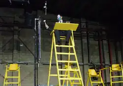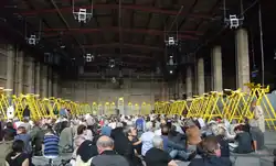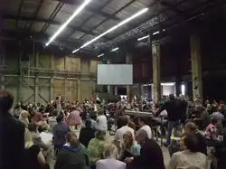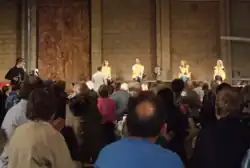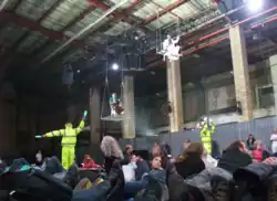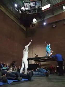 The staged premiere of Mittwoch was given by the Birmingham Opera Company on what would have been the composer's 84th birthday, Wednesday 22 August 2012 at the Argyle Works, a former factory in Digbeth, Birmingham, as part of the London 2012 Festival, with further performances on 23, 24, and 25 August.[4][5][6] The director was Graham Vick, music director Kathinka Pasveer, designer Paul Brown, lighting Giuseppe di Iorio, and choreography Ron Howell. The production went on to win the 2012 Royal Philharmonic Society Award for Opera and Music Theatre.