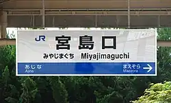 Miyajimaguchi Station (宮島口駅, Miyajimaguchi-eki) is a passenger railway station located in the city of Hatsukaichi, Hiroshima Prefecture, Japan. It is operated by the West Japan Railway Company (JR West).[1] From the pier near the station there are ferry services for Miyajima (Itsukushima) by JR Miyajima Ferry and Miyajima Matsudai Kisen.