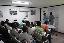On January 12, 2010, Haiti was struck by an earthquake that registered 7.0 on the Richter Scale.[27] Some estimates quoted the death toll as high as 300,000, with another 300,000 wounded and more than one million people left homeless.[28] In a partnership with Pan American Development Foundation (PADF), Miyamoto International arrived shortly afterward to aid local professionals in the reconstruction.[29][30] The United Nations Office for Project Services (UNOPS) worked with the Haitian government and Miyamoto International in Port-au-Prince to assess the extent of the structural damage.[31] Miyamoto International also trained locals in masonry and structural engineering so they could repair their homes or rebuild new quake-resistant buildings.[32] Miyamoto trained over 500 structural engineers, to inspect over 400,000 homes, with Miyamoto issuing a statement that most of the homes could be "repaired in less than three days for $1,000 to $1500 each."[33][34] Following these events, Miyamoto International also established a permanent office in Haiti.[13]