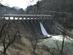 Miyashita Dam is a gravity dam on the Tadami River 2 km (1 mi) upstream of Mishima in the Fukushima Prefecture of Japan. It was constructed between 1941 and 1946 for the purpose of hydroelectric power generation. It supplies a 94 MW power station with water.[1]