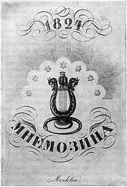 Mnemozina (Russian: Мнемозина, IPA: [mnʲɪmɐˈzʲinə]) was a quarterly literary almanac, published in Moscow from 1824 to 1825. The full title in the Russian language is Мнемозина, собрание сочинений в стихах и прозе (Mnemozina, collected works in verse and prose) and was a reference to Mnemosyne, a persona in Greek mythology embodying memory. The main editors were Wilhelm Küchelbecker, and Vladimir Odoevsky.[1][2]