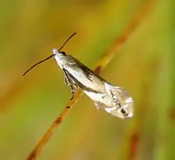 M. acuta differs from M. hamadelpha in having the thorax white instead of ochreous; also, the basal fuscous streak of the forewing is apically pointed and bent obliquely downwards and has a blunt or suffused apex.[2]