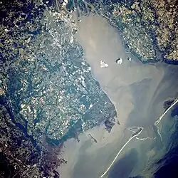 Jubilee is the name used locally for a natural phenomenon that occurs sporadically on the shores of Mobile Bay, a large body of water on Alabama's Gulf Coast. During a jubilee many species of crab and shrimp, as well as flounder, eels, and other demersal fish will leave deeper waters and swarm—in large numbers and very high density—in a specific, shallower coastal area of the bay.[2] A jubilee is a celebrated event in Mobile Bay, and it attracts large crowds, many drawn by the promise of abundant and easy-to-catch seafood.[3]