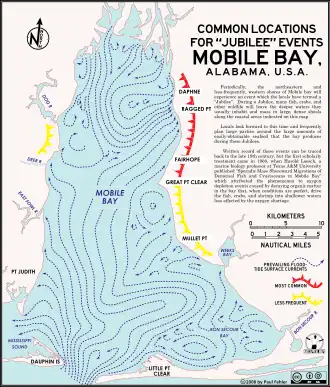 - ^ "Mobile Bay Jubilee Information". 6 June 2015. Retrieved 2016-01-01.