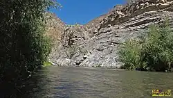 The Moctezuma arises in the Zimapán Dam, this reservoir is formed by the Tula and San Juan rivers which join in the reservoir to form the Moctezuma River later downstream of the dam.[2] The Zimapán Dam, is a hydroelectric dam about 15 km southwest of the town of Zimapán. At Tamazunchale it receives the Amajac River. Below the town of Tanquián de Escobedo it forms the border between the states of San Luis Potosí and Veracruz. It receives the Tempoal River at El Higo. It ends at its confluence with the Tamuín River (Tampaón River) where together they form the Pánuco River.[3]