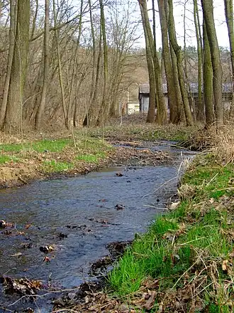 The Modřany Gully nature reserve (Czech: Přírodní památka Modřanská rokle) is located in the districts of Modřany, Cholupice and Libuš of Prague, Czech Republic on the east side of the Vltava river. It was formed by erosion from the Libuš creek, which, in several places has exposed geologic profiles. It was granted protected status due to the riparian forest in the area near the creek, and the occurrence of thermophilic meadow ecologies on the slopes, but in recent years has suffered from encroachment of foreign flora, in particular the Black Locust tree. It is also an important recreational area between two housing estates, containing a nature trail and several cycling routes.