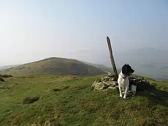 Moel y Gydros is a member of the Arenig range with Arenig Fawr lying approximately 8 miles (13 km) to the south west. Its parent peak, Carnedd y Filiast is 3 miles (4.8 km) to the west, and to the north west the Carneddau, Glyderau and Snowdon can be seen on a clear day, 20 miles (32 km) distant. The bleak moorland of Mynydd Hiraethog, and the Clwydian Range is to the north, with the Dee Valley, Corwen and the Berwyn range to the east / southeast. On highly exceptional days, Kinder Scout in the Peak District of Derbyshire can be seen, 78 miles (126 km) away, although such sightings would be rare.