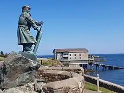 The statue stands 7ft high on a granite plinth and was created by Sam Holland.[11]