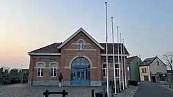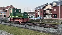 The railways remained in use with the factory till it was demolished. The station of Moerbeke is now the municipal library.[22] On a small section of track that was left near the station stands a Deutz 55815 Switcher locomotive from 1954.[23] The railway bridge Vapeurbrug over the Moervaart is a monument. Part of railway line 77 is now a bicycle path to Stekene and Sint-Gillis-Waas.[22]