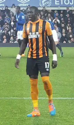 On 1 September 2014, Diamé joined Hull City, signing a three-year contract.[25] Two weeks later, he made his debut at the KC Stadium, scoring against his former club West Ham in a 2–2 draw.[26]