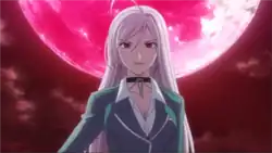 In each of the episodes in the anime series, when Moka's rosario is removed, there is a transformation sequence where she becomes a "super-vampire". She still has silver hair and red eyes with slit pupils, but undergoes physical changes to her body such as slightly larger hips and bust size.[S1 ep 1] Her transformation is likened to those of magical girls.[S1 ep 1][7] Her voice is deeper and more serious, and in the English version, she is voiced by a different voice actor.[S1 ep 1] Following her fights as Inner Moka, the bat character announces the duration of Moka's fight.[8] Her appearance resembles that of her father, Issa Shuzen.