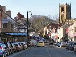 ![]() Mold High Street, with St Mary's Church to the top-right. | |
