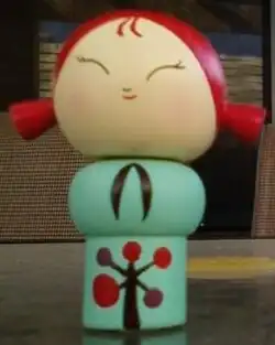 Momiji Dolls were originally inspired in 2005 by kokeshi, a variety of wooden doll traditionally made in Northern Japan.[3] These dolls were carved from spare pieces of wood and hand painted. They were usually made by farmers.[1] The dolls typically consist of a head and elongated torso representing the body and legs as a single piece.[1] Momiji dolls are different from the traditional Kokeshi dolls in that they are made from resin and contain a small space in the base. Inside the base is a small folded card for a secret message or greeting. Momiji dolls are often designed by fresh new designers and are known for their work with colleges and art schools worldwide.
