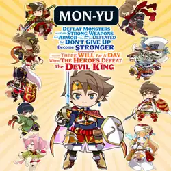 2. ^ Full title: Mon-Yu: Defeat Monsters and Gain Strong Weapons and Armor. You May Be Defeated, but Don’t Give Up. Become Stronger. I Believe There Will Be a Day When the Heroes Defeat the Devil King (Japanese: モンスターを倒して強い剣や鎧を手にしなさい。死んでも諦めずに強くなりなさい。勇者隊が魔王を倒すその日を信じています。, Hepburn: Monster wo Taoshite Tsuyoi Ken ya Yoroi wo Te ni Shinasai. Shindemo Akiramezu ni Tsuyoku Narinasai. Yuusha Tai ga Maou wo Taosu Sono Hi wo Shinjiteimasu)