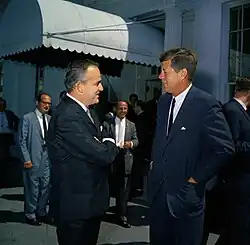 Rainier III and John F. Kennedy after a luncheon in honour of the Prince and his wife, May 1961.