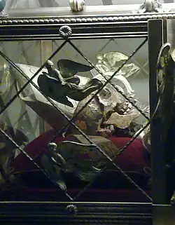Monas died on 25 March (the exact year was not recorded) and his corpse was buried near the church of Saint Vitalis of Milan (Basilica Fausta), in the area where now stand the Basilica of Sant'Ambrogio. Under the episcopate of Arnulf II (998-1018), on 12 October (the year was not recorded), his relics were discovered and translated into the church of Saint Vitale near the Basilica Naboriana (now demolished). On 6 February 1576 his relics were translated by Saint Charles Borromeo to the Cathedral of Milan where they are today.[3]