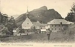 The monastery is about 7 kilometres (4.3 mi) from Voreppe along a winding forest road.[1] It is located on a plateau overlooking Voreppe at an altitude of 940 metres (3,080 ft), which is often snow-covered in winter.[2] The monastery is set in a beautiful location in the Chartreuse Mountains. It has a cemetery and a Romanesque church.[3]