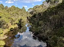 By 1865, there were alluvial gold diggings from the village to the river's confluence with the Shoalhaven River and, in the other direction, upstream for about seven miles, as well as in gullies, particularly that of Tantalean Creek.[18] The gold was patchy[17] and the field attracted hard-working Chinese miners who were prepared to persevere and work in teams, for a modest return on their labour and time.[19]