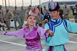 The Mongolian Military Song and Dance Academic Ensemble (Mongolian: Цэргийн Дуу Бүжгийн Эрдмийн Чуулга, Tsergiin Duu Büjgiin Erdmiin Chuulga) is an official academic ensemble of the Mongolian Armed Forces. It is located on Sükhbaatar Street in the Mongolian capital of Ulaanbaatar.[1] It is under the direct command of the Mongolian Defense Ministry.