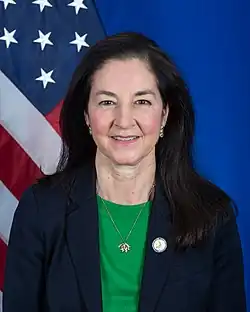 Monica P. Medina (born 1962) is an American attorney and government official who previously served as the Assistant Secretary of State for Oceans and International Environmental and Scientific Affairs at the Department of State.[1] Medina served as Principal Deputy Undersecretary of Commerce for Oceans and Atmosphere, deputy associate attorney general, and general counsel of National Oceanic and Atmospheric Administration. She was also the U.S. Commissioner to the International Whaling Commission.[2] She briefly served as President and CEO of the Wildlife Conservation Society.[3]