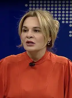 Monika Kryemadhi (born 9 April 1974) is an Albanian politician, former member of Parliament and former leader of the Socialist Movement for Integration party.[2] She is also the wife of the former President of Albania Ilir Meta. Monika Kryemadhi refused the position of First Lady of Albania—delegating the role instead to her eldest daughter, Bora.[3]