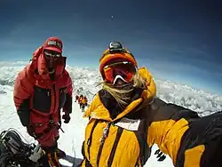 In 2017, the year of the 150th anniversary of Canada, she made a first attempt on this mountain with a companion.[6][10][15][16][17][18][19][20][21] They reached the summit plateau but had to turn back at an altitude of about 5,500 m.[22]