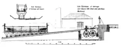 Cleland (1816), writing later, says, "The communication between these levels was at that time carried on by means of an inclined plane, upon which the coals were let down in boxes, and re-shipped on the lower level."[22]