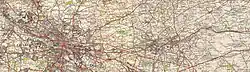It passed south of the present-day Main Street area of Coatbridge, from where the short Dundyvan Branch ran southwards. It was built to serve coal pits and then extended to serve the Dundyvan Ironworks with a complex of railway trans-shipment sidings at its termination.[2] The main canal then ran fairly straight from the present-day A725 roundabout at the east end of Coatbridge Main Street to the Sunnyside Street roundabout. At this time Coatbridge had not developed at all, and the canal was simply described as "passing under the Edinburgh and Glasgow Road, by a wooden bridge, termed Coat Bridge, two miles [3 km] west of Airdrie."[3]