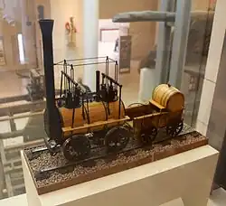 The same makers delivered No. 2 on 10 September 1831. These locomotives were of the "Killingworth" type, considered even at this date rather old-fashioned: Dodds had a conservative outlook and had specified this type in preference to the technically progressive English designs of Robert Stephenson.[6] They had two vertical cylinders, and the pistons had piston rings; the boiler was 9 feet (2,743 mm) long by 4+1⁄2 feet (1,372 mm) diameter, with 62 copper tubes 1+1⁄2 inches (38 mm) diameter; working pressure was 50 lb/sq in (340 kPa). The wheels were 4 feet (1,219 mm) in diameter. The locomotives were reported to have been very reliable.[5]