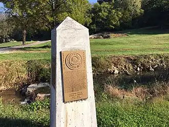 The Mill was located on the north bank of the Monroe City Creek, about one quarter mile below its source at a karst spring.[4] The creek provided water to power the mill. The valley created by erosion from the creek is generally referred to as "the Monroe City Hollow."