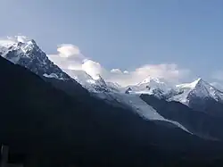 Percy Shelley formulated "Mont Blanc" at the end of July 1816, when along with Mary Godwin and Claire Clairmont (Mary Godwin's step-sister) he toured the Arve Valley by Mont Blanc, Europe's highest mountain.[1] Percy Shelley was inspired by the scenery surrounding a bridge over the river Arve in the Valley of Chamonix in Savoy, near Geneva, and decided to set his poem in a similar landscape.[1] He wrote that his verse was "composed under the immediate impression of the deep and powerful feelings excited by the objects which it attempts to describe; and, as an undisciplined overflowing of the soul, rests its claim to approbation on an attempt to imitate the untamable wilderness and inaccessible solemnity from which those feelings sprang".[2] Later, when describing the mountains in general terms, he wrote, "The immensity of these aerial summits excited when they suddenly burst upon the sight, a sentiment of ecstatic wonder, not unallied to madness."[3]