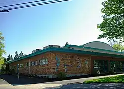 Founded in 2010, the Montavilla Food Co-op is working to bring a cooperative grocery to the neighborhood, though it currently does not have a storefront.[9] Montavilla is home to the community organization Pollinator Parkways, which converts parking strips to wildlife habitat.[10] The Montavilla East Tabor Business Association hosts the Montavilla Street Fair each summer, drawing thousands of attendees to the historical downtown Montavilla strip on SE Stark Street. The Montavilla Emergency Warming Shelter[11] and Rahab's Sisters[12] both operate from St. Peter and Paul Church, located on SE 82nd Avenue. The neighborhood was served by the local Mid-County Memo newspaper until 2019. The Montavilla Farmers Market is held on Sundays at 77th and Stark.[13] The southern portion of the neighborhood includes the Jade District commercial and cultural center.