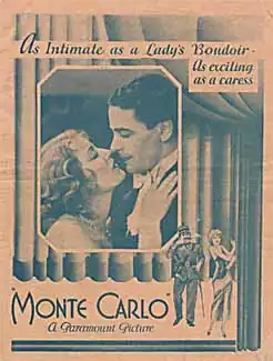 Monte Carlo is a 1930 American pre-Code musical comedy film, directed by Ernst Lubitsch. It co-stars Jack Buchanan as a French Count Rudolph Falliere masquerading as a hairdresser and Jeanette MacDonald as Countess Helene Mara. The film is notable for introducing the song "Beyond the Blue Horizon", which was written for the film and is first performed by MacDonald and a chorus on the soundtrack as she escapes on the train through the countryside. Monte Carlo was hailed by critics as a masterpiece of the newly emerging musical film genre. The screenplay was based on the Booth Tarkington novel Monsieur Beaucaire.