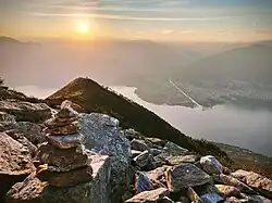Monte Gambarogno (1,734 m) is a mountain of the Lugano Prealps, overlooking Lake Maggiore in the canton of Ticino. It lies on the range between Lake Maggiore and Lake Lugano, culminating at Monte Tamaro.