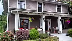 The two story Craftsman structure was originally built in 1908 as single family home. During the Pacific Northwest logging boom of the early 20th century,[5] the home was converted into a bordello which contained a doctor's clinic, whose operating room was located in the home's current dining area. By 1930 the home was converted into a nine room hospital, each room containing a pot bellied stove. In the 1960s, the home was again purchased and turned into a single family residence. Eventually the home fell into disrepair. During the early 1990s the ground floor was boarded up and the home was used as storage for an antique store in Kalama. In 2006, the home was purchased by Eric and Julianna Montgomery, who then restored the derelict property and in 2008 re-opened the structure as Montgomery House Bed and Breakfast.,[6]