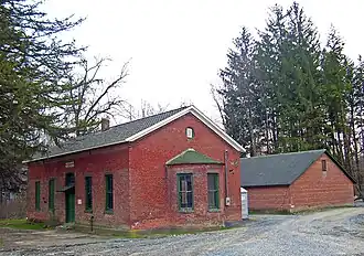 The Montgomery Water Works is located along NY 17K in the village of Montgomery, New York. The two small brick buildings were built in 1895 on land sold to the village by Arthur Patchett, whose own house still stands across the road.