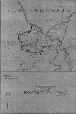 The Montour Railroad (reporting mark MTR) was a short line railroad company operating passenger and freight service in southwestern Pennsylvania. At its height in the 1930s, the railroad served 27 mines transporting nearly seven million tons of coal annually in Allegheny and Washington Counties.