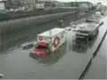 Montreal's sewer system was designed to handle only 36 millimetres (1.4 in) per hour, which is a once-in-10-years occurrence, according to Gaston Moreau, assistant director of public works. The flood's return period was estimated to be at least 50 years.[6] Lightning and wind caused widespread power outages which in turn stopped the pumping system from evacuating the excess water from low lying roads and underpasses. Décarie expressway, a sunken highway, rapidly filled with water descending from access roads and soon became a river. Thousands of motorists were trapped and had to be rescued by firefighters and truckers with higher-clearance vehicles. An 80-year-old man drowned and another person died of electrocution.[1]