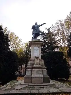 The idea for the erection of the monument was part of the series of initiatives in Spain intending to commemorate the 400th anniversary of the arrival of Columbus to the Americas.[1] A work by Eduardo Barrón and standing 3.30 metre high, the statue representing Columbus was cast in bronze.[2] The location chosen for the monument was the Plaza de los Menores, that from then on, it became known as "plaza de Colón".[1] Building works started in 1892.[1]