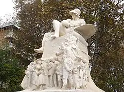 The Monument to the Felice Cavallotti is a marble sculpture on a plinth located Via Marina #2 in Milan, Italy. It is located just north of the facade of the Palazzo del Senato in Milan, in a pocket park that emerges south of the gardens of the Villa Belgiojoso Bonaparte. The monument was created by Italian sculptor Ernesto Bazzaro and is dedicated to tempestuous patriot, politician, journalist, and poet, Felice Cavallotti.