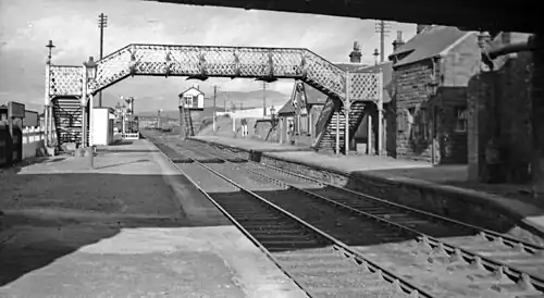 An engine shed[16][17][18][19][20] and sidings flanked the station, with the junctions for the branches starting at the eastern end of the platforms.[21]
