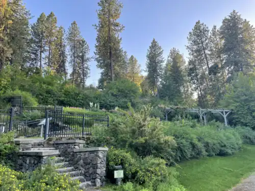 In 1945, the Spokane Park Board bought the property and combined it with the D.C. Corbin property to the east to form Pioneer Park, as it was then known. The gardens, maintained by the City of Spokane Parks and Recreation Department, opened to public use in 2007 following a three-year restoration project funded through donations, grants, and a major donation from Myrtle Woldson. The gardens include plants introduced prior to 1915, a tea house, a rose garden, perennial garden, and a pond.[2] The historic garden is a contributing property to the Marycliff-Cliff Park Historic District on the National Register of Historic Places[3] and in 2008, it won the Valerie Sivinski Award for Outstanding Achievement in Historic Preservation from the Washington State Department of Archaeology and Historic Preservation.[4]