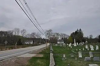 The Moosup Valley Historic District is a rural, agricultural historic district in western Foster, Rhode Island. The focal center of the area is a small village where Moosup Valley Road crosses the Moosup River, and where the Moosup Valley Christian Church is located. The largest concentration of buildings in the district lie along a roughly one-mile stretch of Moosup Valley Road west of Rhode Island Route 14, with properties extending along some of the winding roads (paved and unpaved) that extend from that road. The district encompasses most of the headwaters of the Moosup River. The major public buildings are the church, a vernacular Greek Revival structure built in 1864–65, and the Grange hall, built in 1926. There is also a one-room schoolhouse which was built in 1811, and later used as a library and community center.[2]