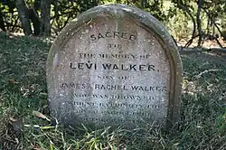 The lone grave of Levi Walker is located on the southern bank of the Caboolture River at 499218E, 7001824N. The headstone reads "Sacred to the memory of Levi Walker, son of James and Rachel Walker, who was drowned whilst bathing in the River Caboolture, 10th October 1869, in the 28th year of his age." While it is not impossible that additional graves exist on the property, no physical evidence of such graves survives though any unmarked graves would be of archaeological potential and importance.[1]