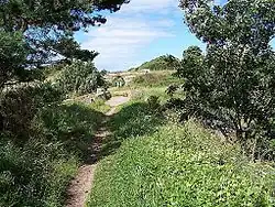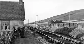 The contractor switched to two 12-hour shifts and had a workforce of around 300 navvies.[15] It was reported at the board meeting held on 2 April 1852, that although the track was half-finished a strike within the workforce had provoked a serious disturbance.[15] There were two stories in circulation regarding the incident. The first of these was that Irish navvies had come onto the job undercutting the locals' wages and the other was that the contractor, who was from England, employed English labour and it was they who objected to the Irish.[12][16] The outcome was that a clash of some sort had taken place and that four of the instigators were arrested and sentenced to various periods of hard labour—a fifth person was to be sent to the Court of Judiciary for trial after assaulting the sheriff.[17] The result of all this was that the Morayshire Railway was ordered to pay for ten additional police constables to regulate the workforce.[16]