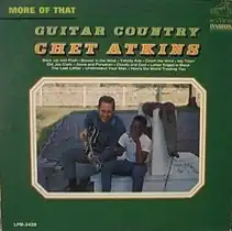 More of That Guitar Country is the twenty-seventh studio album by US country musician Chet Atkins. It is a follow-up to his Guitar Country release and was more successful. His rendition of "Yakety Sax" by Boots Randolph earned Atkins a hit on the country singles charts. A mix of traditional fingerpicking, country-flavored pop and traditional country, the album peaked at number 4 on the Billboard Country charts.